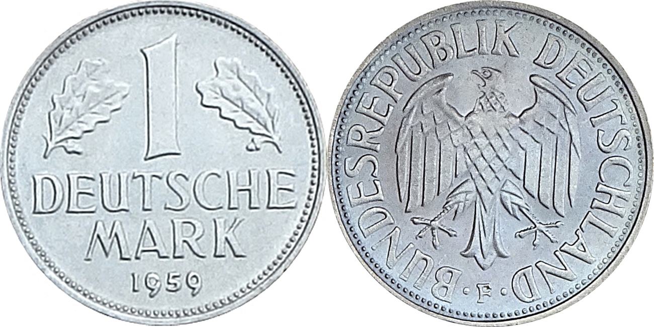 Federal Republic - 1950-2001 - 1 Mark. 1 Mark 1955 F. 1 Mark 1955 F. Update item. Certified Graded. Have a certified graded item? Please add its images here! My Personal Collection. My Wish List.. 1955 F 1 Deutsche Mark DM D Mark FRG Germany excellent conservation #M853 Buy now $1.07.