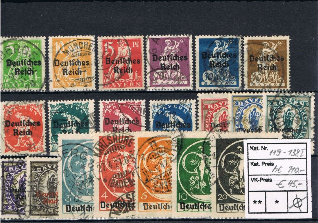 Deutsches Reich 20 Werte (5 Pf. bis 20 Mark) 1920 bis 1921 Mi.Nr. 119138 I, April. Freimarken