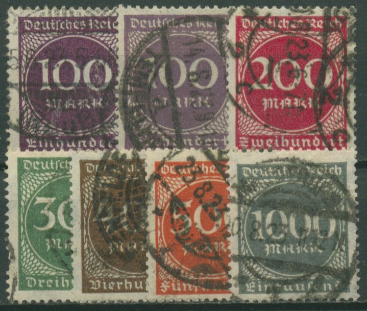 Deutsches Reich 1923 Freimarken Ziffern im Kreis 268/73 gestempelt, mit 268 a+b Briefmarken Dr