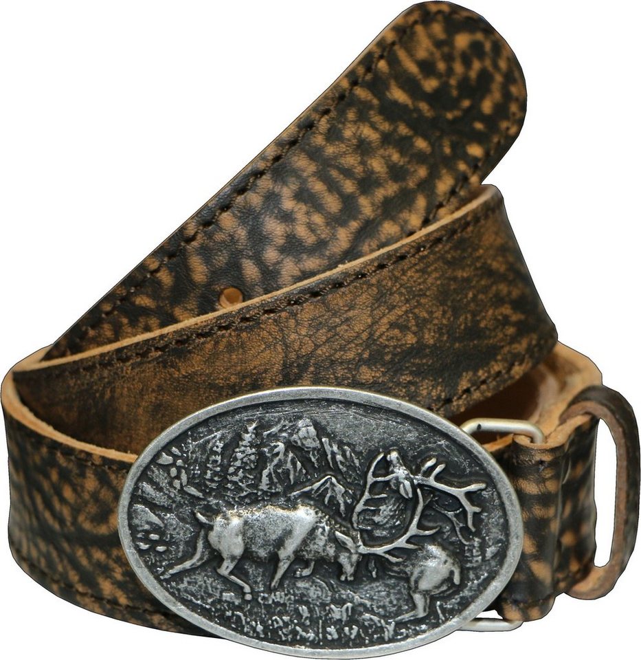 La Chasse® Ledergürtel »Ledergürtel aus Rindsleder mit Schnalle kämpfende Hirsche Gürtel für