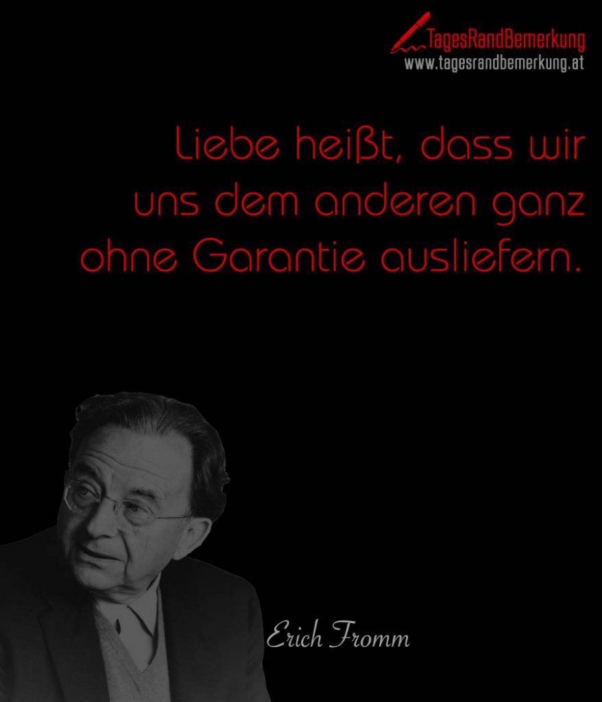 7 Zitate von Erich Fromm über die Liebe. 8 Minuten. Das Vermächtnis, das uns Erich Fromm in seinen Zitaten über die Liebe hinterlassen hat, inspiriert uns heute noch. Denn wenn wir eines zugeben müssen, dann, dass die Liebe nicht immer einfach ist. Die Liebe erfordert Mut, Handeln, Engagement und auch ein großes Maß an.