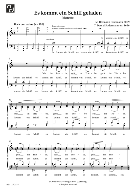 Es kommt ein Schiff geladen Gemischter Chor PDF Noten von Hermann Grollmann in D Moll ndv1190138