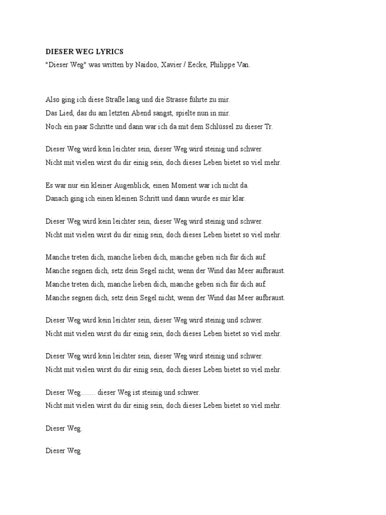 Der Weg Lyrics English Translation Herbert Groenemeyer Lyrics Raw
