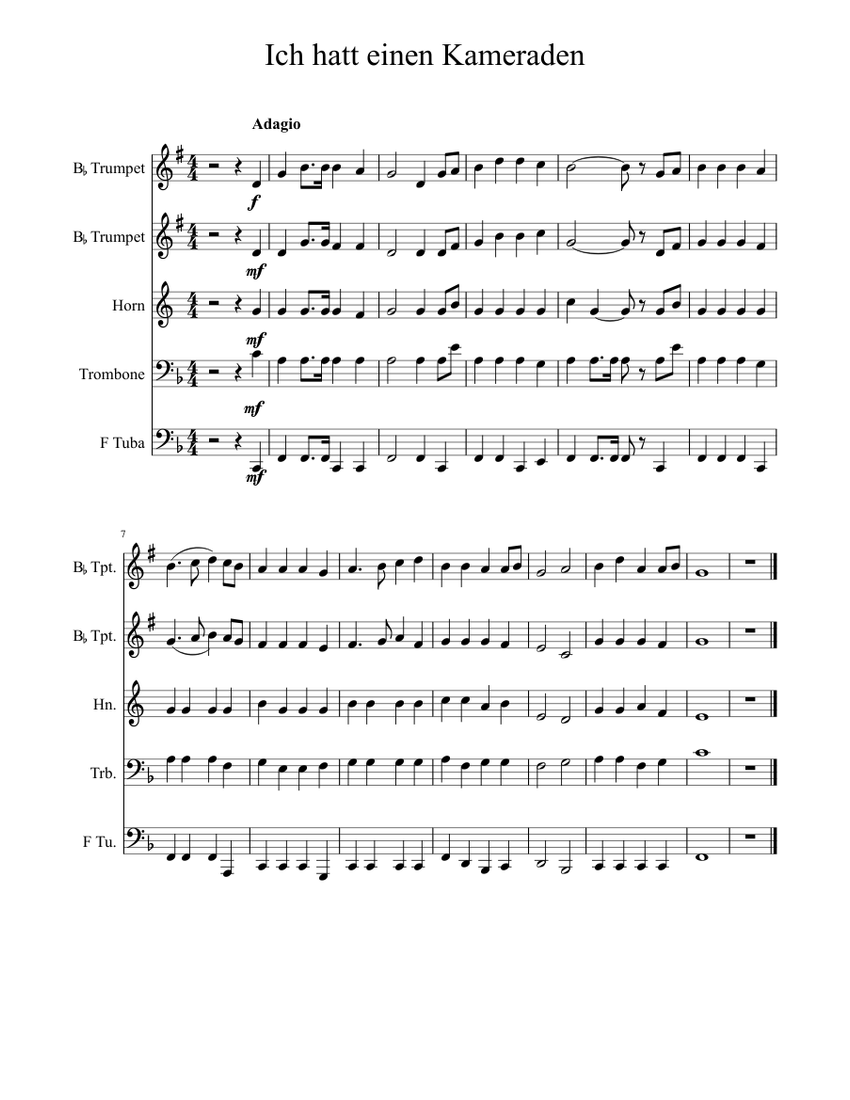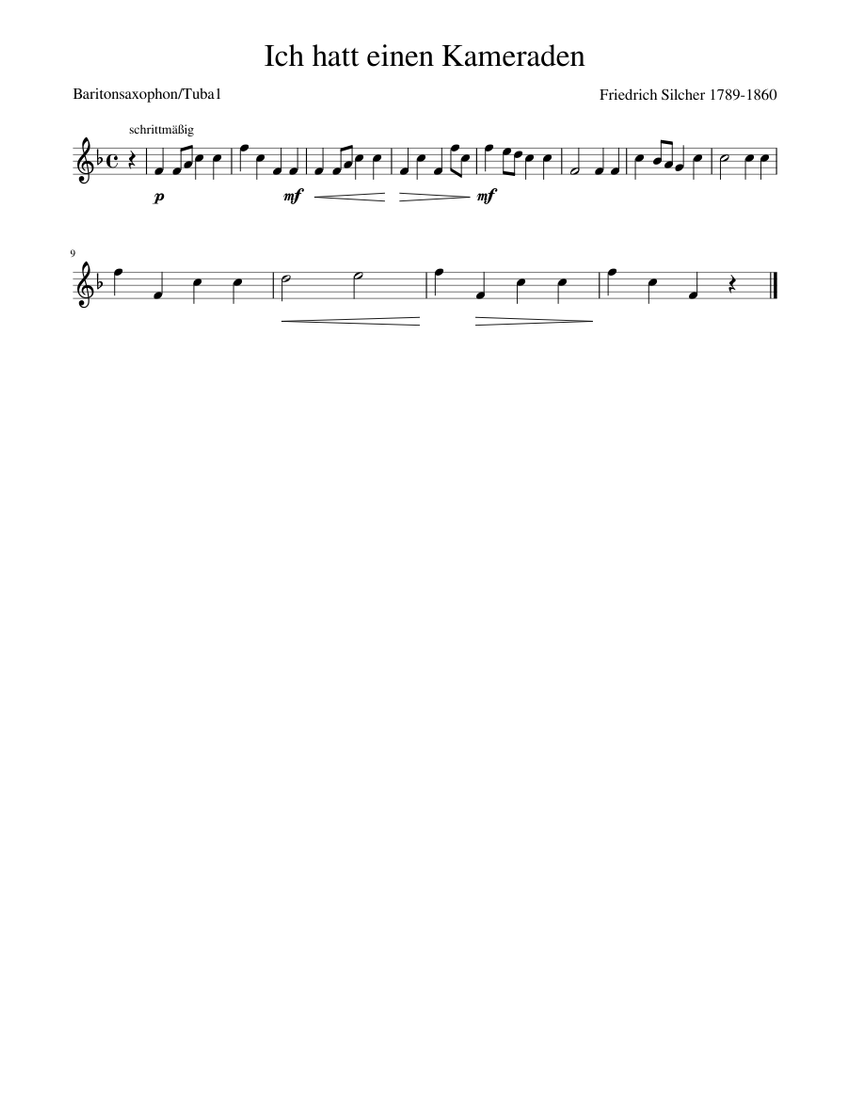 Share, download and print free sheet music of Ich Hatt' Einen Kameraden Misc tunes for piano, guitar, flute and more with the world's largest community of sheet music creators, composers, performers, music teachers, students, beginners, artists and other musicians with over 1,000,000 sheet digital music to play, practice, learn and enjoy.