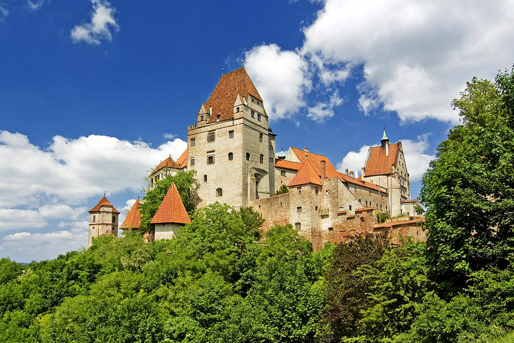 Die mächtige Burg Trausnitz überragt auf einer Anhöhe die Stadt. Sie wurde 1204 durch Herzog Ludwig I., den Kelheimer, gegründet. Über ein Vierteljahrtausend lang diente sie den Wittelsbachern als Stammburg und war der prächtige Regierungssitz der niederbayerischen Herzöge. Besonders die „Reichen Herzöge" von Bayern-Landshut, Heinrich, Ludwig und Georg, prägten im 15. Jahrhundert.