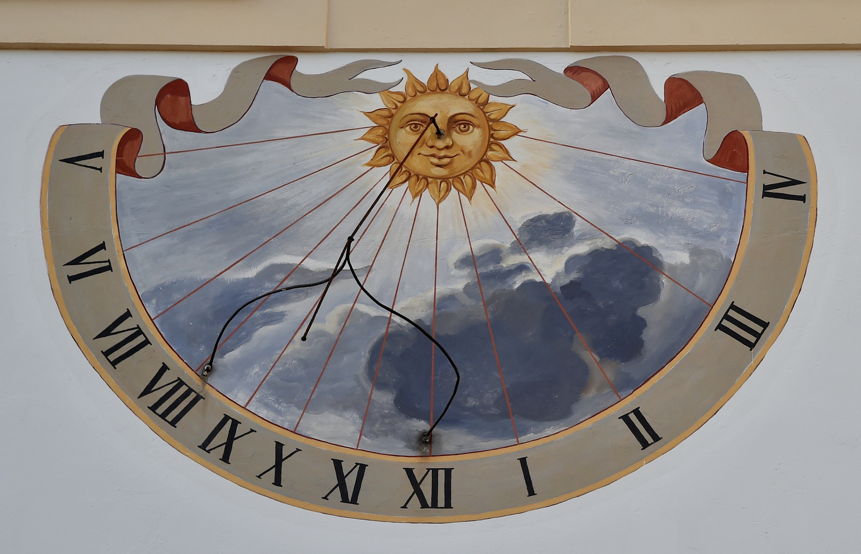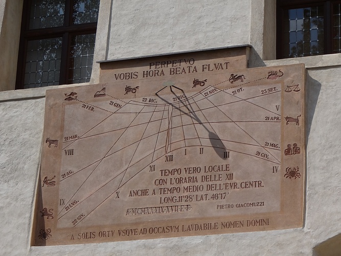 Mach es wie die Sonnenuhr, zähl die heiteren Stunden nur. Sie [die Sonnenuhr] geht nicht vor, sie geht nicht nach, geht immer richtig, Tag für Tag. Meine Grenzen sind der Morgen und der Abend Die Sonnenuhr geht immer richtig, die Räderuhr nimmt man zu wichtig. Die Rebe und die Sonnenuhr, sie leben von der Sonne nur