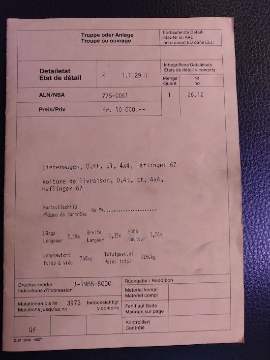 Steyr Puch Haflinger Etat Liste schweizer Armee Kaufen auf Ricardo