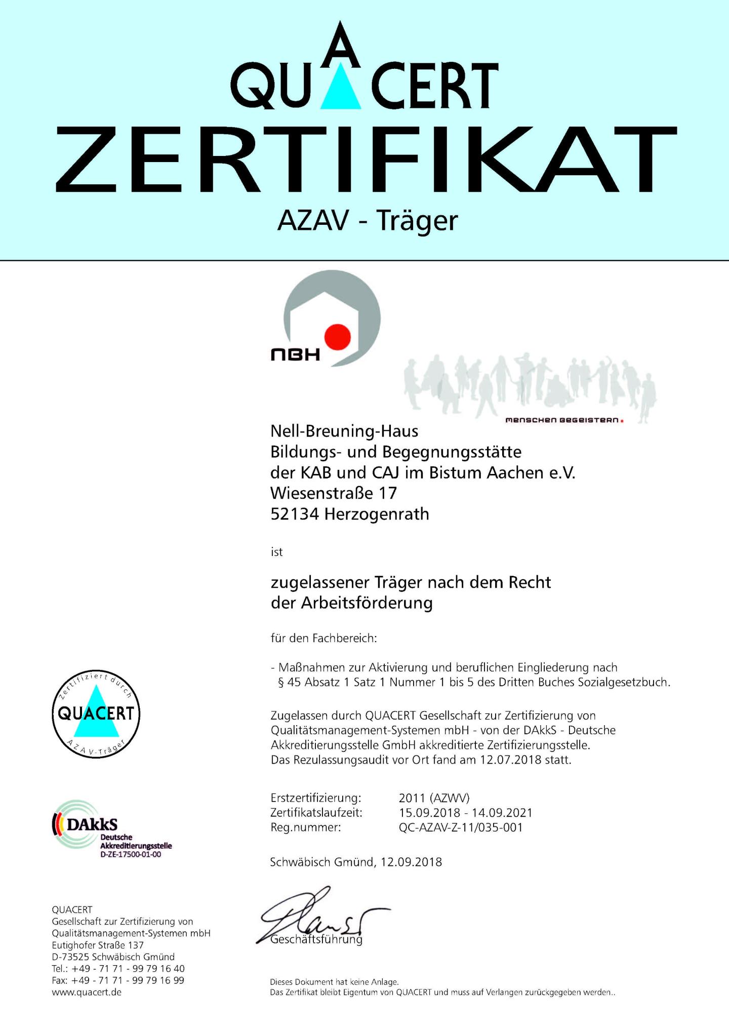erfolgreiche Rezertifizierung nach AZAV und DIN EN ISO 9001! NellBreuningHaus