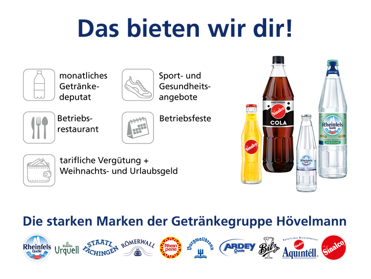 RheinfelsQuellen H. Hövelmann GmbH & Co. KG Rechtsform: GmbH & Co. KG: Gründung: 1905 Sitz: Duisburg-Walsum: Leitung:. Die Mineralquellen und Getränke H. Hövelmann GmbH ist ein Hersteller von Limonaden und Mineralwasser und gehört zu den führenden Getränkelogistikern Deutschlands. Sitz des Unternehmens ist Duisburg-Walsum Geschichte.