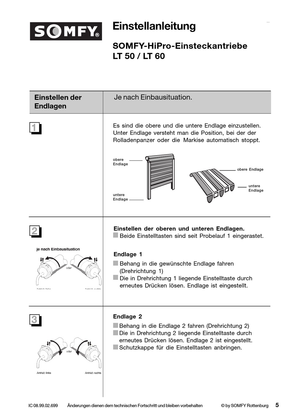 Einstellen Der Endlagen; Einstellanleitung SOMFY LT50 Montage Und Einstellanleitung [Seite 5