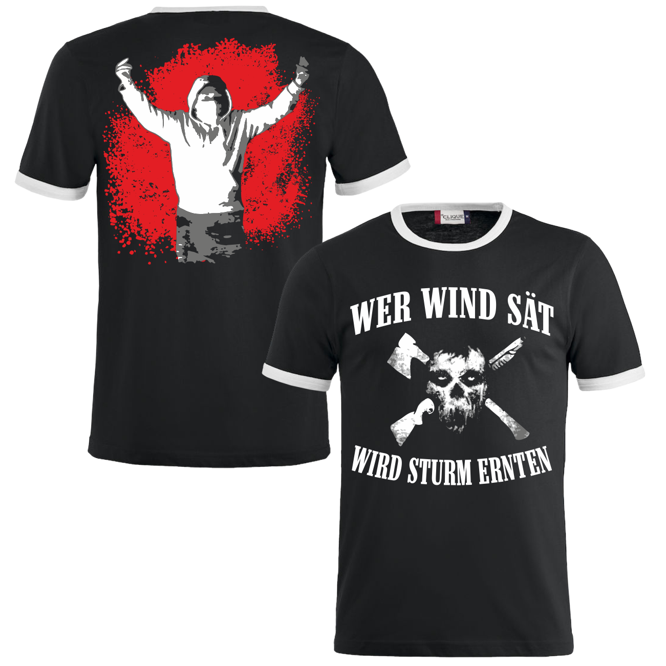 TShirt Wer Wind sät wird Sturm ernten totenkopf spruch sprüche deutsch hardcore eBay