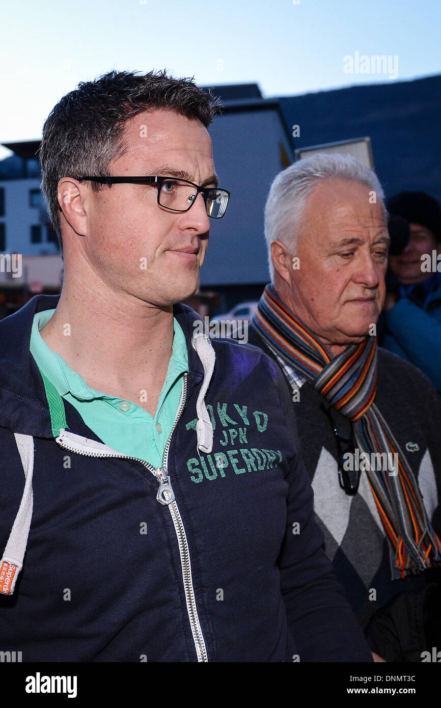 die französischen Alpen, Frankreich. 2. Januar 2014. Ralf Schumacher (L), Bruder des